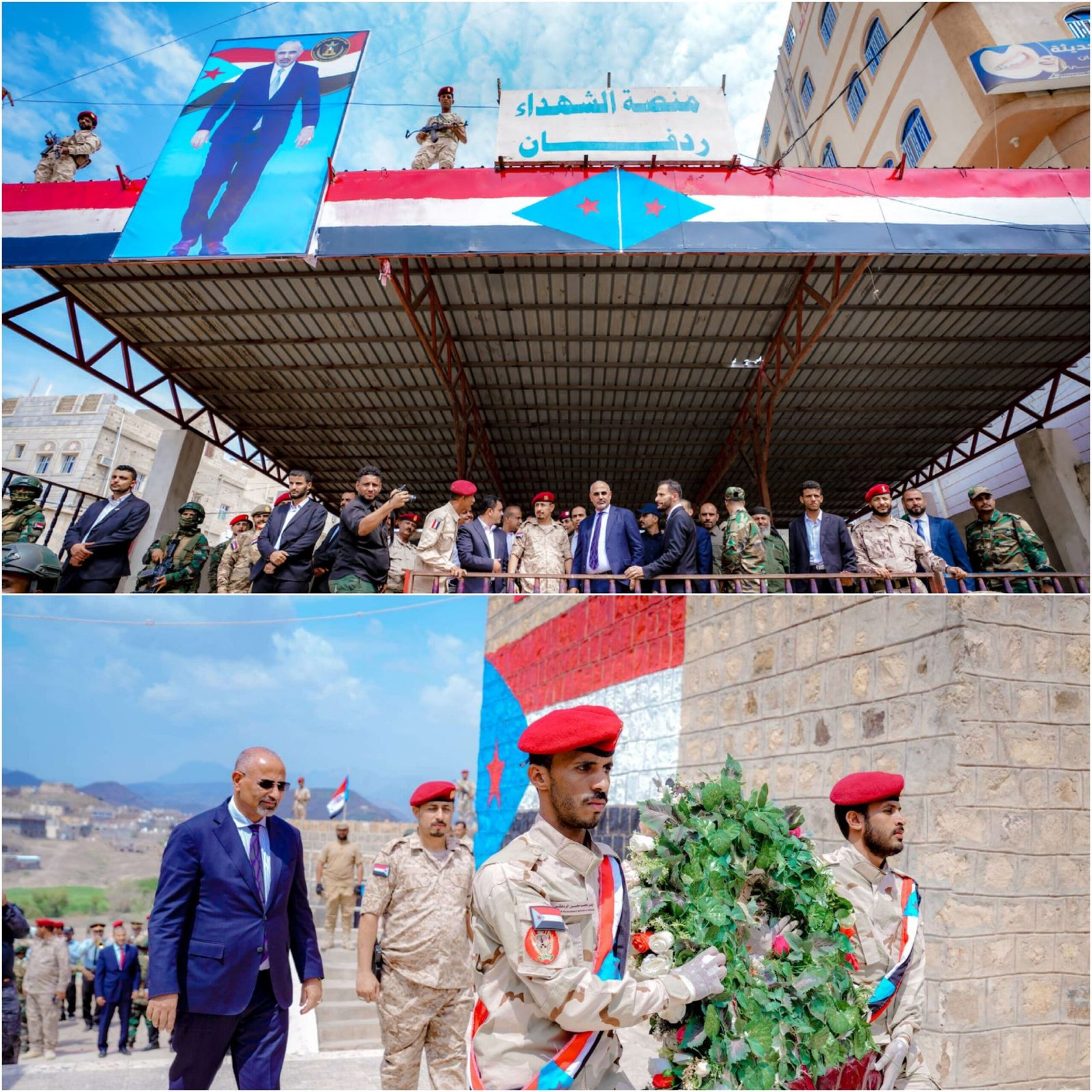وخلال الزيارة، وضع الرئيس الزُبيدي إكليلًا من الزهور على نصب الشهيد البطل راجح بن غالب لباقرأوزة، مؤسس شرارة الثورة الجنوبية ضد الاستعمار البريطاني، وقرأ الفاتحة على روحه الطاهرة وأرواح الشهداء الأبرار الذين رووا بدمائهم الزكية تراب الوطن في سبيل الحرية والاستقلال.