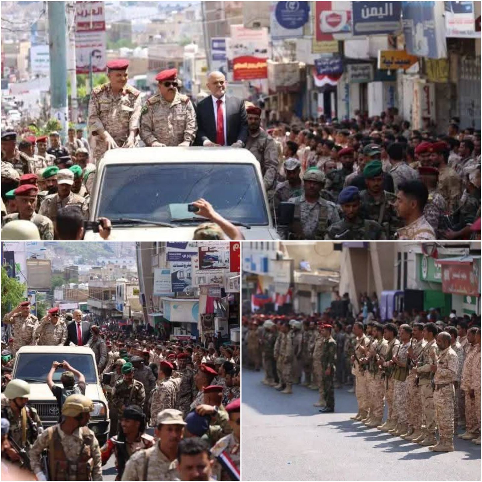 وجرى العرض وسط شارع جمال بمدينة تعز بحضور محافظ المحافظة نبيل شمسان وعدد من القيادات العسكرية والأمنية والمدنية، حيث استعرضت وحدات الجيش والأمن جاهزيتها العالية واستعدادها للقيام بمهامها الوطنية في الدفاع عن الجمهورية ومكتسباتها.