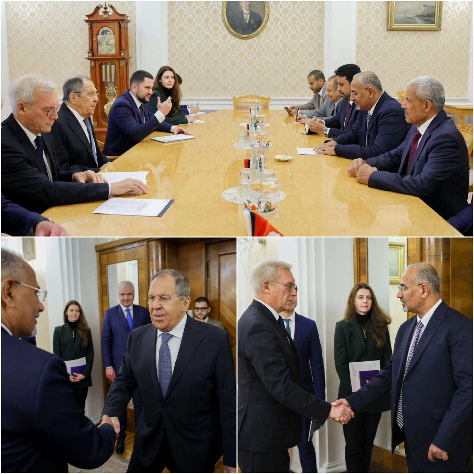 وفور وصوله العاصمة موسكو، عقد الرئيس الزُبيدي والوفد المرافق له لقاءً ثنائيًا مع وزير الخارجية الروسي سيرجي لافروف وعدد من كبار المسؤولين في وزارة الخارجية الروسية.